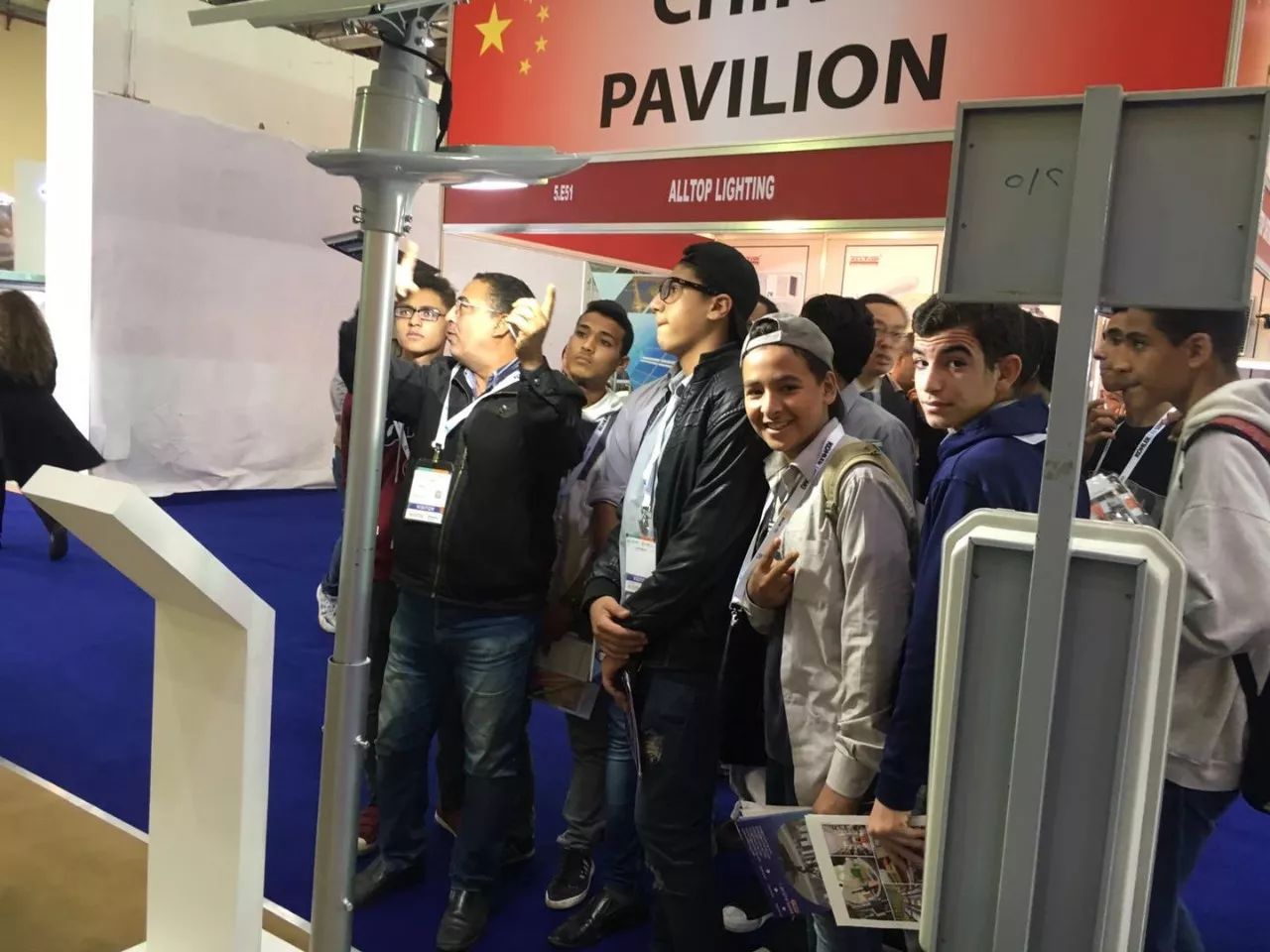 當然源碼的魅力絕不僅僅于此,源碼太陽能智慧路燈的驚艷更在于擁有“智慧的大腦”,即擁有著十大核心技術的智能監測與控制系統。源碼在太陽能路燈領域的強大技術吸引了一大批埃及大學生團體,教授更是現場教學,用源碼太陽能智慧路燈為學生講解著太陽能路燈未來的發展趨勢。